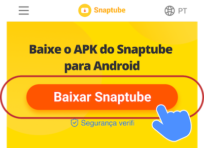 Acesse o site oficial do snaptube e clique em “Baixar sanptube”